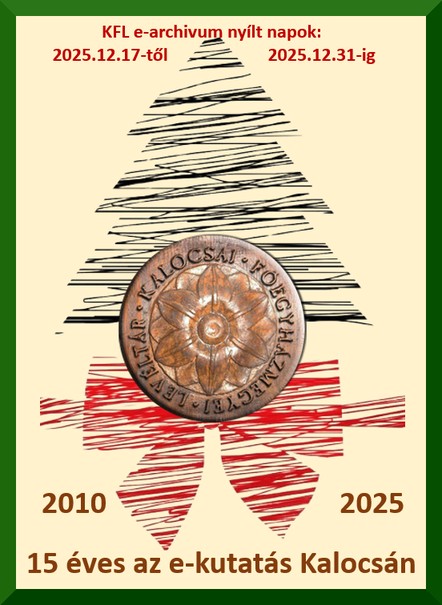 A közelmúltban volt 15 éves a Kalocsai Főegyházmegyei Levéltár (KFL) e-kutatás szolgáltatása. Az alkalomból 15 napos nyílt (ingyenes) hozzáférést biztosít a levéltár az online tartalomhoz, a közelgő ünnepek idejére.